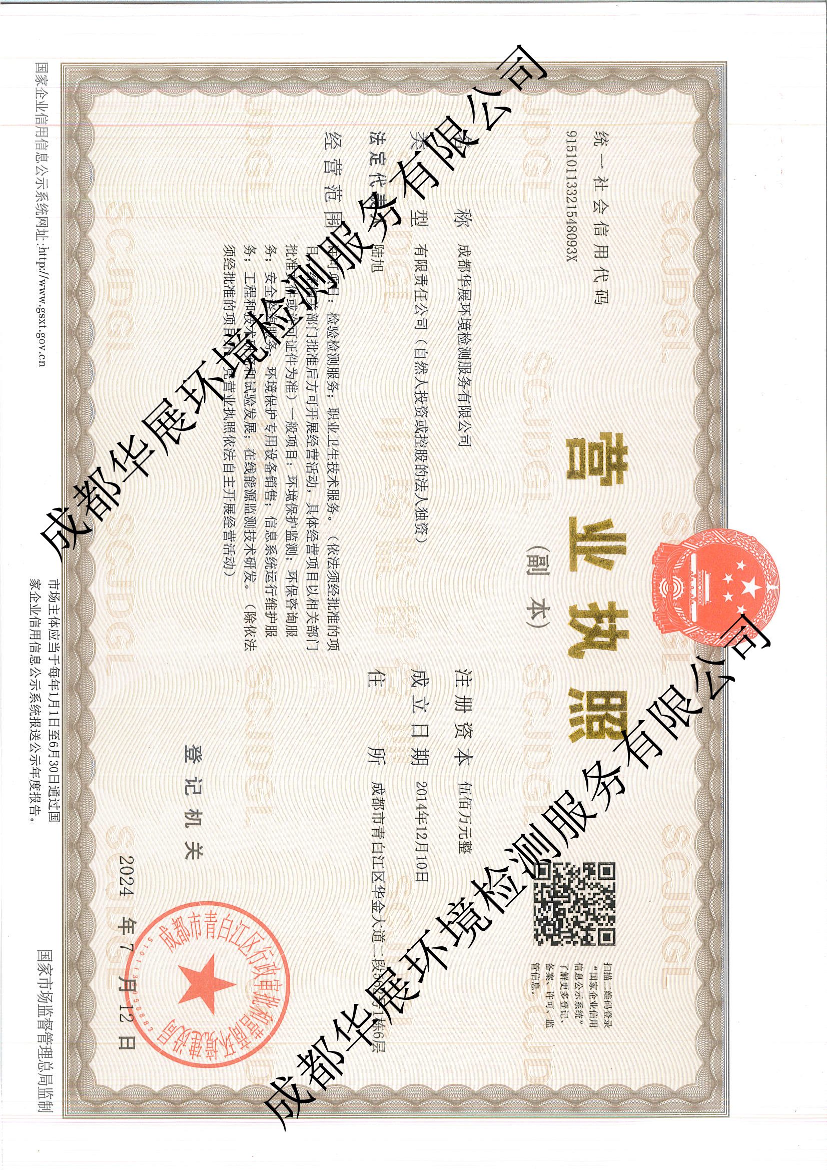 成都華展環境檢測服務有限公司是以優勢資源、優秀人 才建立的標準化的第三方社會化檢測機構。公司建有2000余平方米的標準化環境檢測實驗室,能夠滿足公司現階段經營規模需要。實驗室配備有 ICP、GC/MS、離子色譜、氣相色譜、液相色譜、原子吸收儀 等大型進口儀器在內的各類環境檢測設備 300 余臺。核心技 術人員檢測工作經驗均在 10 年以上,主要技術負責人員具 有30余年現場分析檢測經驗。目前公司共計持證項目(方法) 數 700 多項……